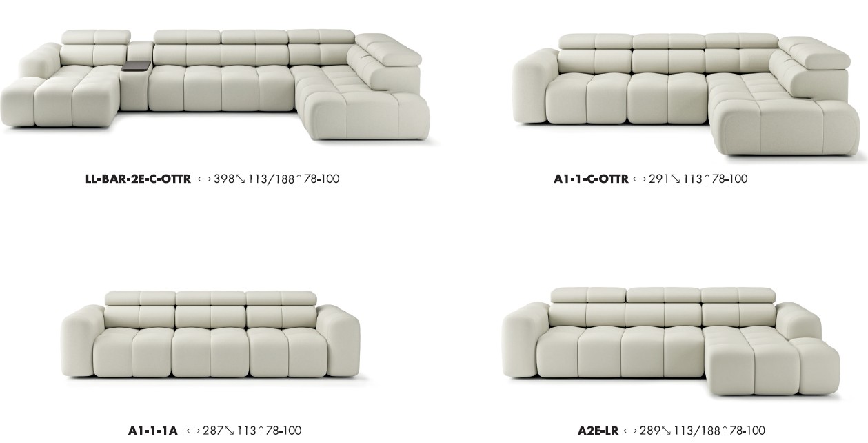 Sedačka AURENA nemá úložný priestor, je zameraná na komfort, estetiku a funkčnosť. Dostupná je v rôznych prevedeniach – od kompaktných zostáv do bytov až po veľké zostavy s barovým prvkom, ktoré sa stanú dominantou vašej obývačky.