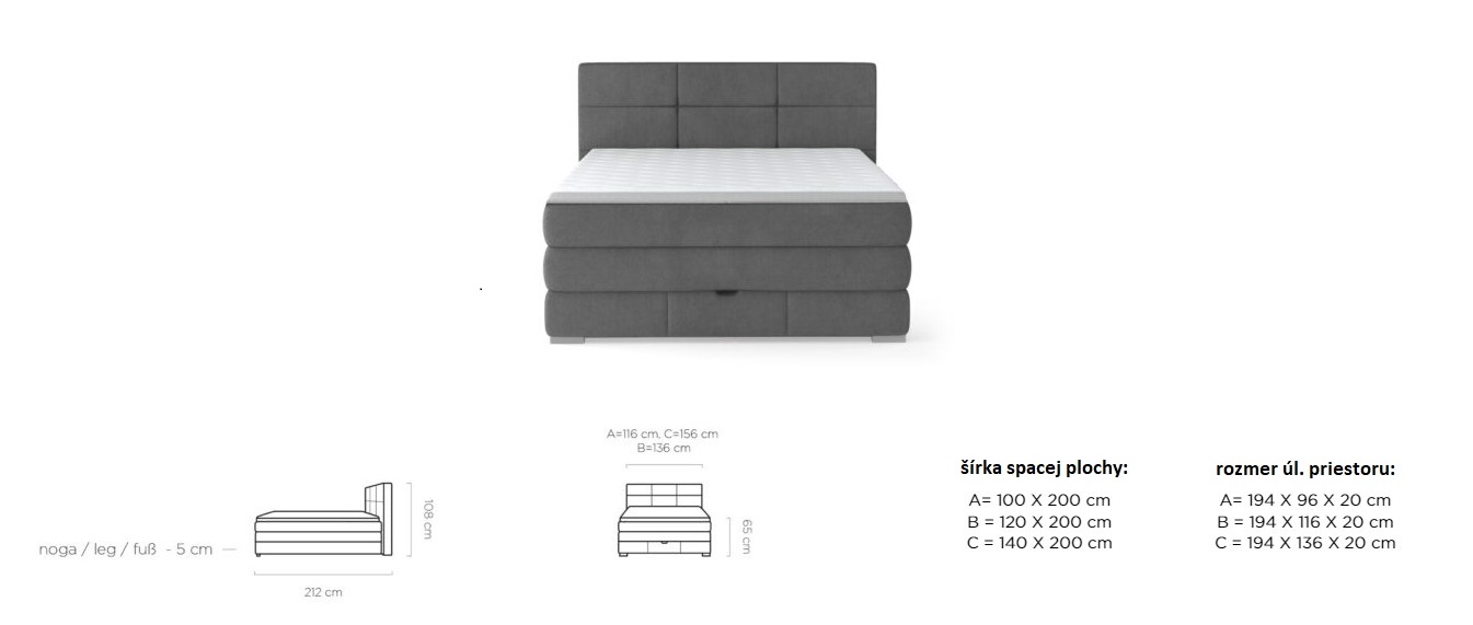 Dostupná v troch rozmerových šírkach: A-100x200 cm/B-120x200 cm /C-140x200 cm