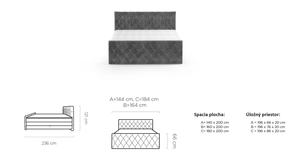 Dostupná v troch rozmerových šírkach: A-140x200 cm/B-160x200 cm /C-180x200 cm