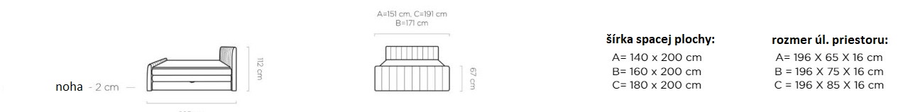 Dostupná v troch rozmerových šírkach: A-140x200 cm/B-160x200 cm /C-180x200 cm
