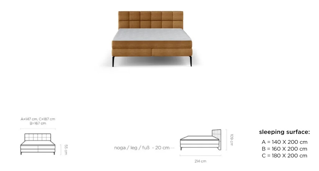 Dostupná v troch rozmerových šírkach: A-140x200 cm/B-160x200 cm /C-180x200 cm