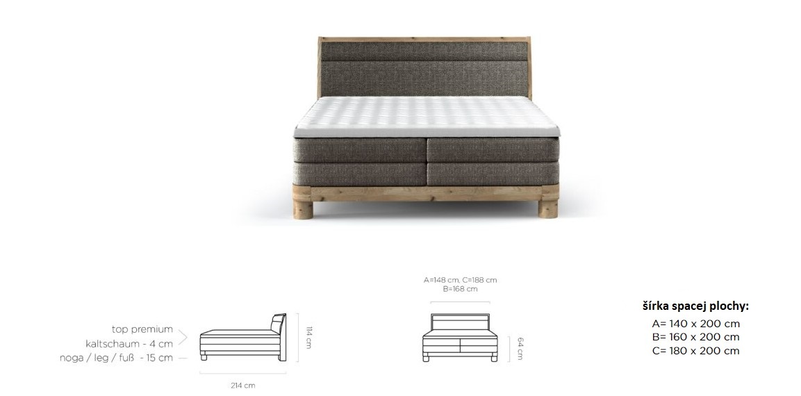 Dostupná v troch rozmerových šírkach: A-140x200 cm/B-160x200 cm /C-180x200 cm