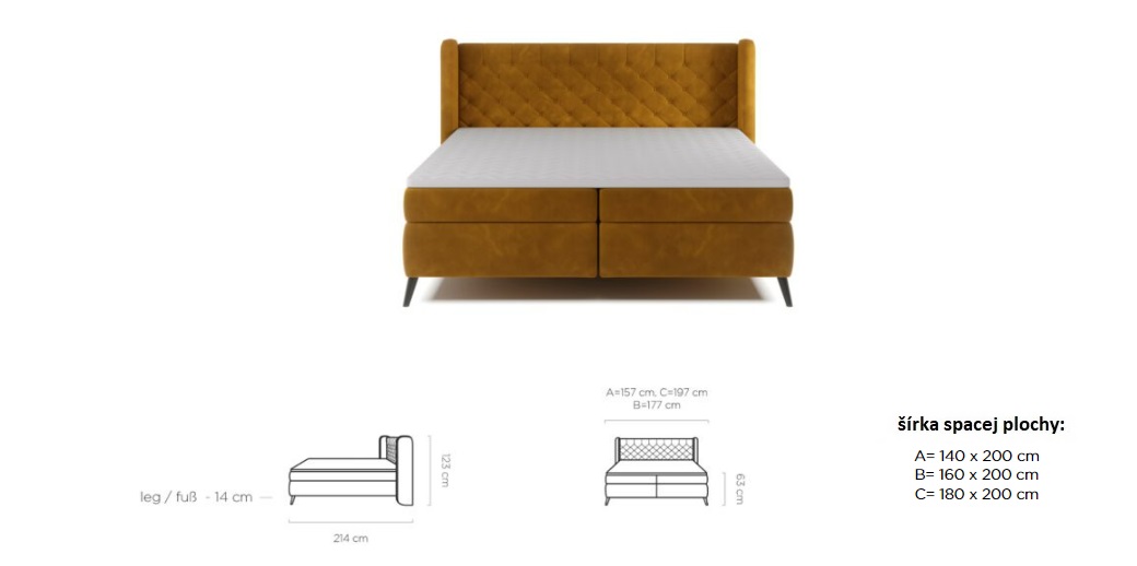 Dostupná v troch rozmerových šírkach: A-140x200 cm/B-160x200 cm /C-180x200 cm