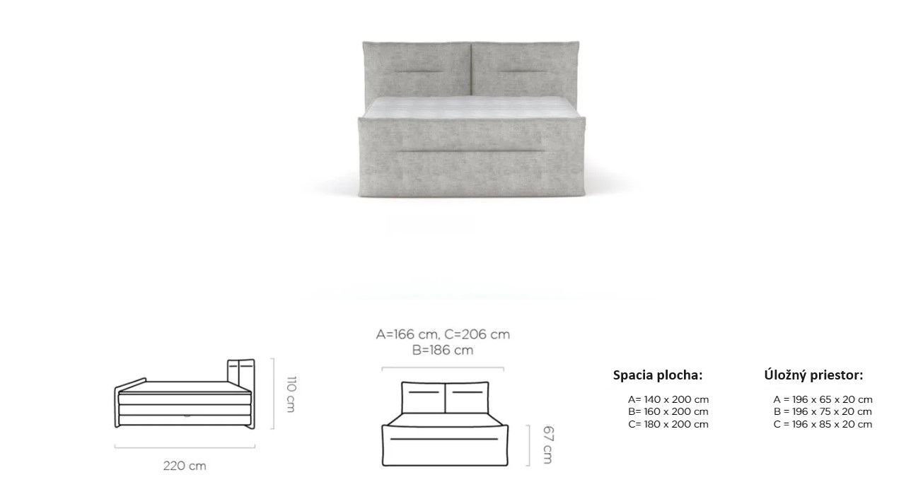 Dostupná v troch rozmerových šírkach: A-140x200 cm/B-160x200 cm /C-180x200 cm