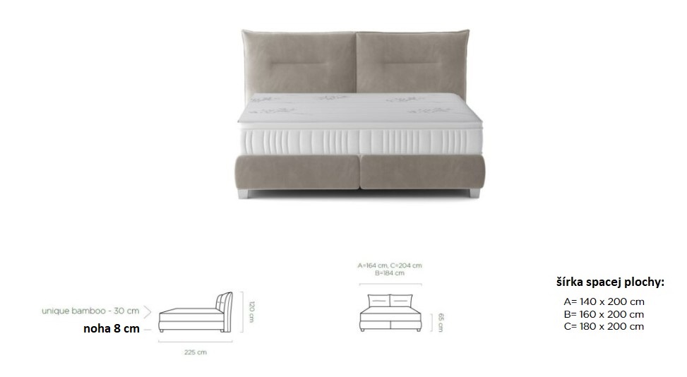 Dostupná v troch rozmerových šírkach: A-140x200 cm/B-160x200 cm /C-180x200 cm