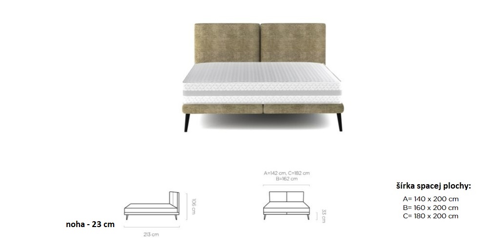 Dostupná v troch rozmerových šírkach: A-140x200 cm/B-160x200 cm /C-180x200 cm