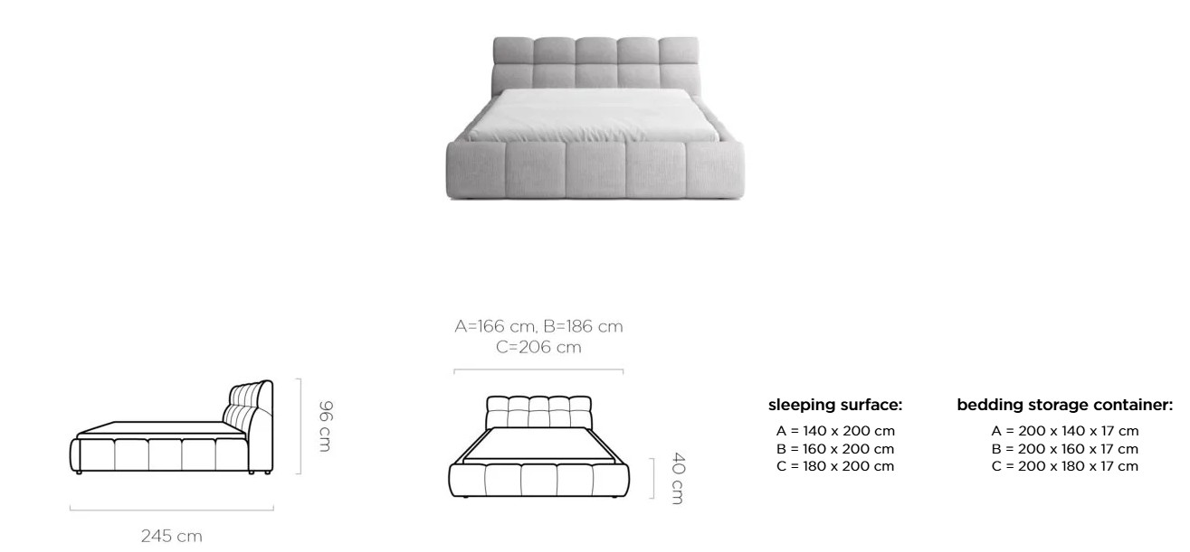 Dostupná v troch rozmerových šírkach: A-140x200 cm/B-160x200 cm /C-180x200 cm