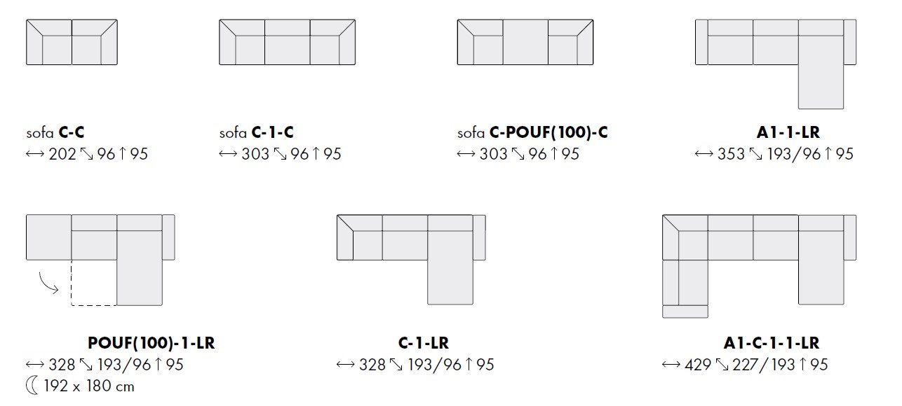 Modulárny systém umožňuje zostaviť ju ako rohovú sedačku, priestrannú zostavu v tvare U alebo samostatnú pohovku.
