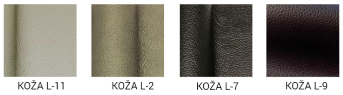 Možnosť výberu zo 4 cenových skupín kože: I. cenová skupina kože (Madras), II. cenová skupina kože (Uruguay), III. cenová skupina kože (Dollaro, Federico), IV. cenová skupina kože (Lemans, Nubuk) - klikni preskúmaj