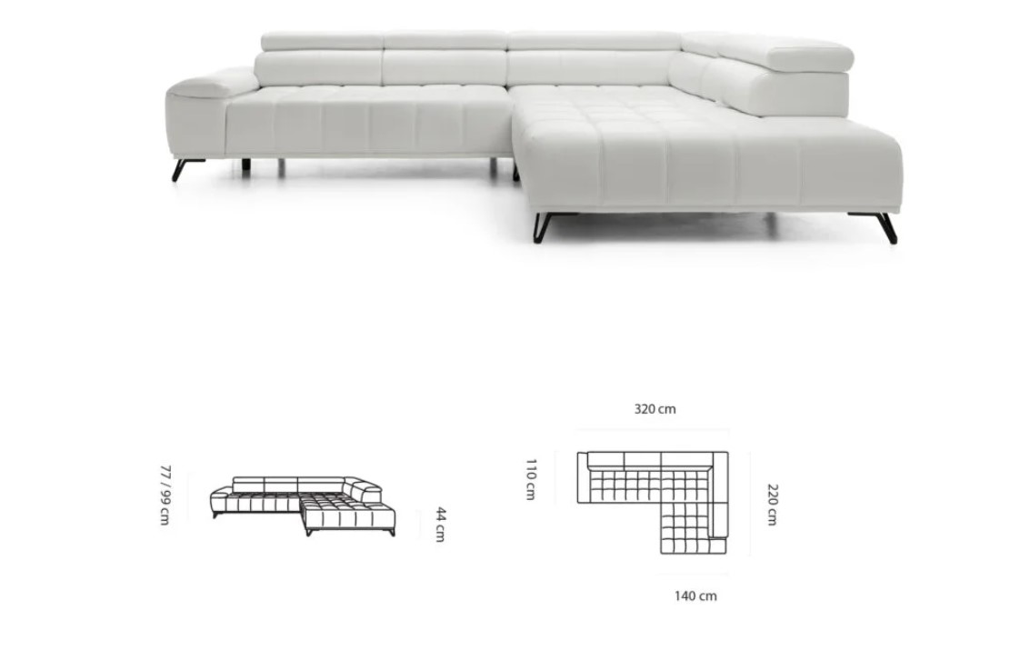 Rozmer: 320 x 220 cm, Výška: 77 / 99 cm, Výška sedu: 44 cm