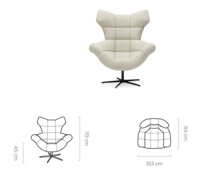 Kreslo v modernom dizajne, luxusné prevedenie za dostupnú cenu. Na výrobu sa používajú vysoko kvalitné výstielky sedáku s vlnovcovými pružinami. Sú navrhnuté podľa najnovších ergonomických princípov a testujú sa na vysokú spolahlivosť a životnosť. Dostupný je veľký výber poťahových látok pre každého.