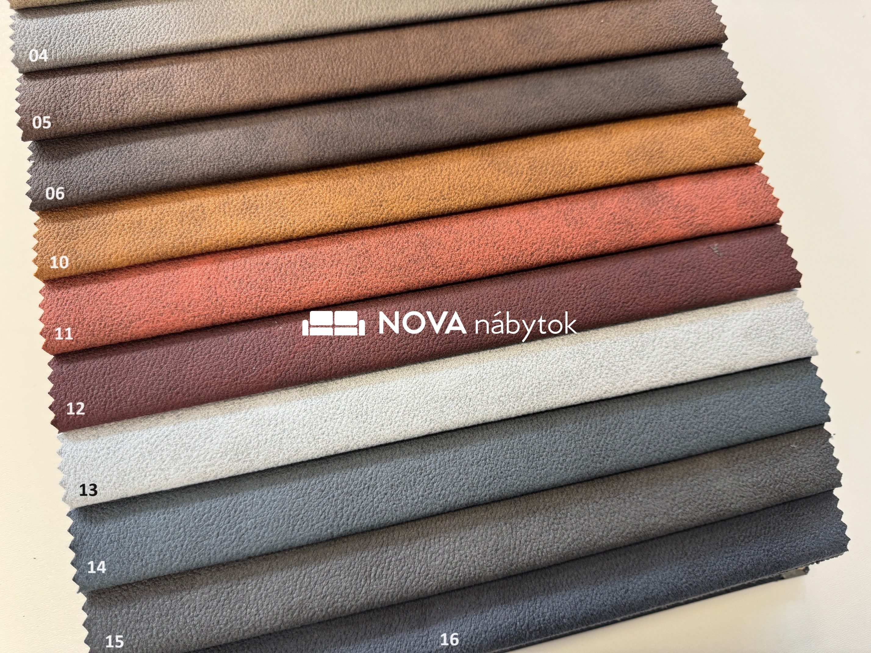 Farebný vzorkovník BRANDO ponúka rozmanité odtiene: Svetlé tóny (01 krémová, 02 béžová, 03 piesková, 13 svetlosivá), hnedé a zemité (04 sivohnedá, 05 tmavohnedá, 06 čokoládová), teplé akcenty (10 horčicová, 11 tehlová, 12 vínová), ako aj moderné sivé a modré (14 oceľová, 15 tmavosivá, 16 antracit).