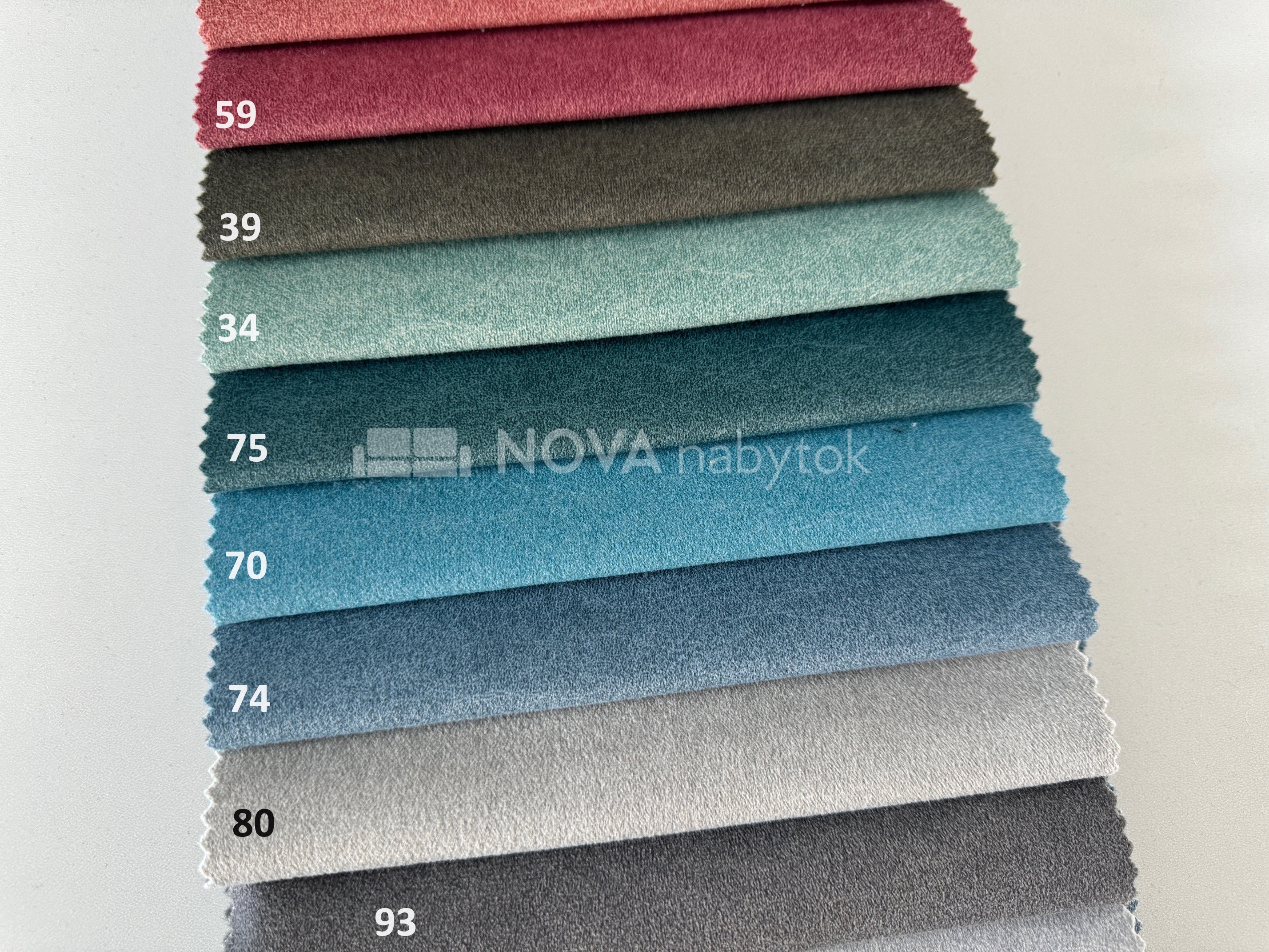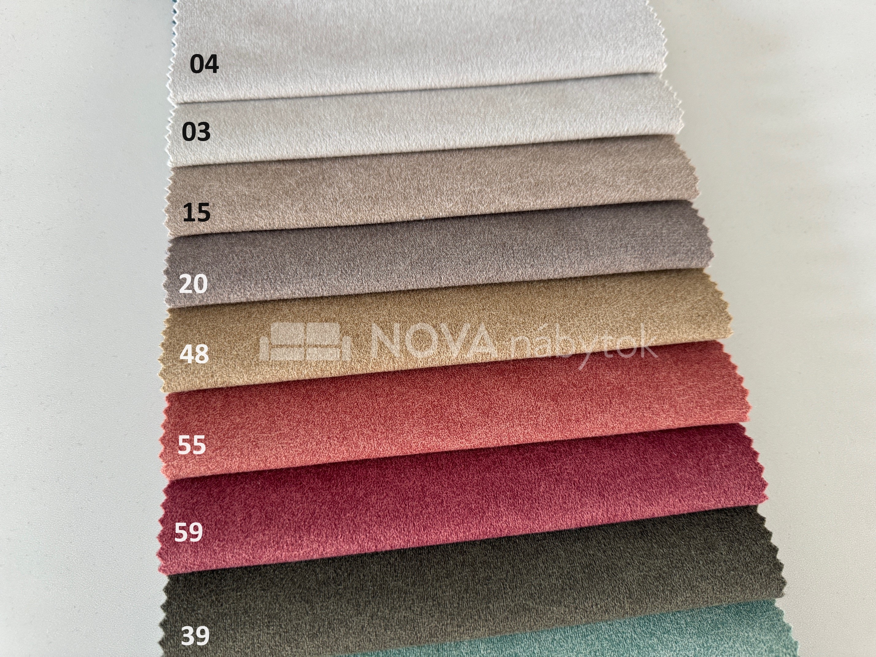 Farebný vzorkovník CASTEL ponúka širokú paletu farieb – od neutrálnych odtieňov (03 svetlá béžová, 04 sivobiela, 15 hnedá, 20 tmavohnedá, 80 svetlosivá), cez elegantné a sýte farby (55 červená, 59 vínová, 39 tmavozelená, 75 tyrkysová, 74 modrá), až po moderné tmavé tóny (93 antracit, 97 grafitová, 79 tmavomodrá).