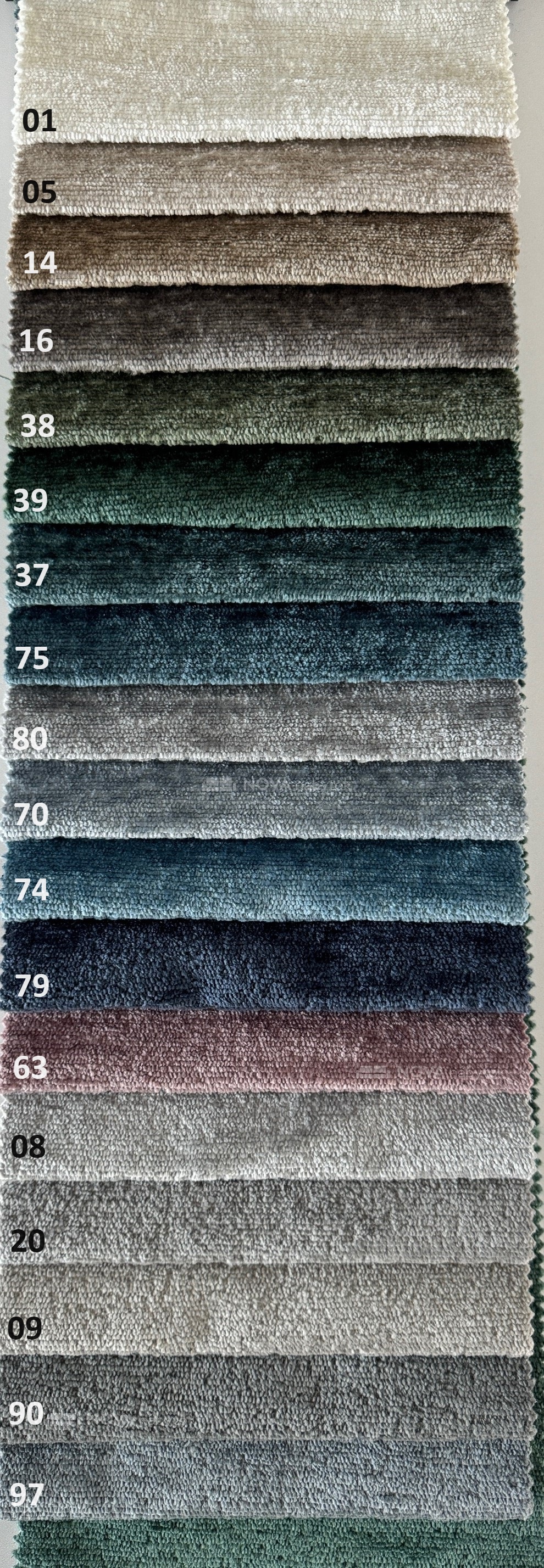 Poťahová látka LORIS je veľmi príjemná na dotyk, s jemnou textúrou a elegantným vzhľadom. Vďaka svojej odolnosti a praktickým vlastnostiam je vhodná na sedacie súpravy, pohovky, kreslá, postele aj vankúše. Test oderu 43 000 cyklov Martindale zaručuje dlhú životnosť pri bežnom používaní.