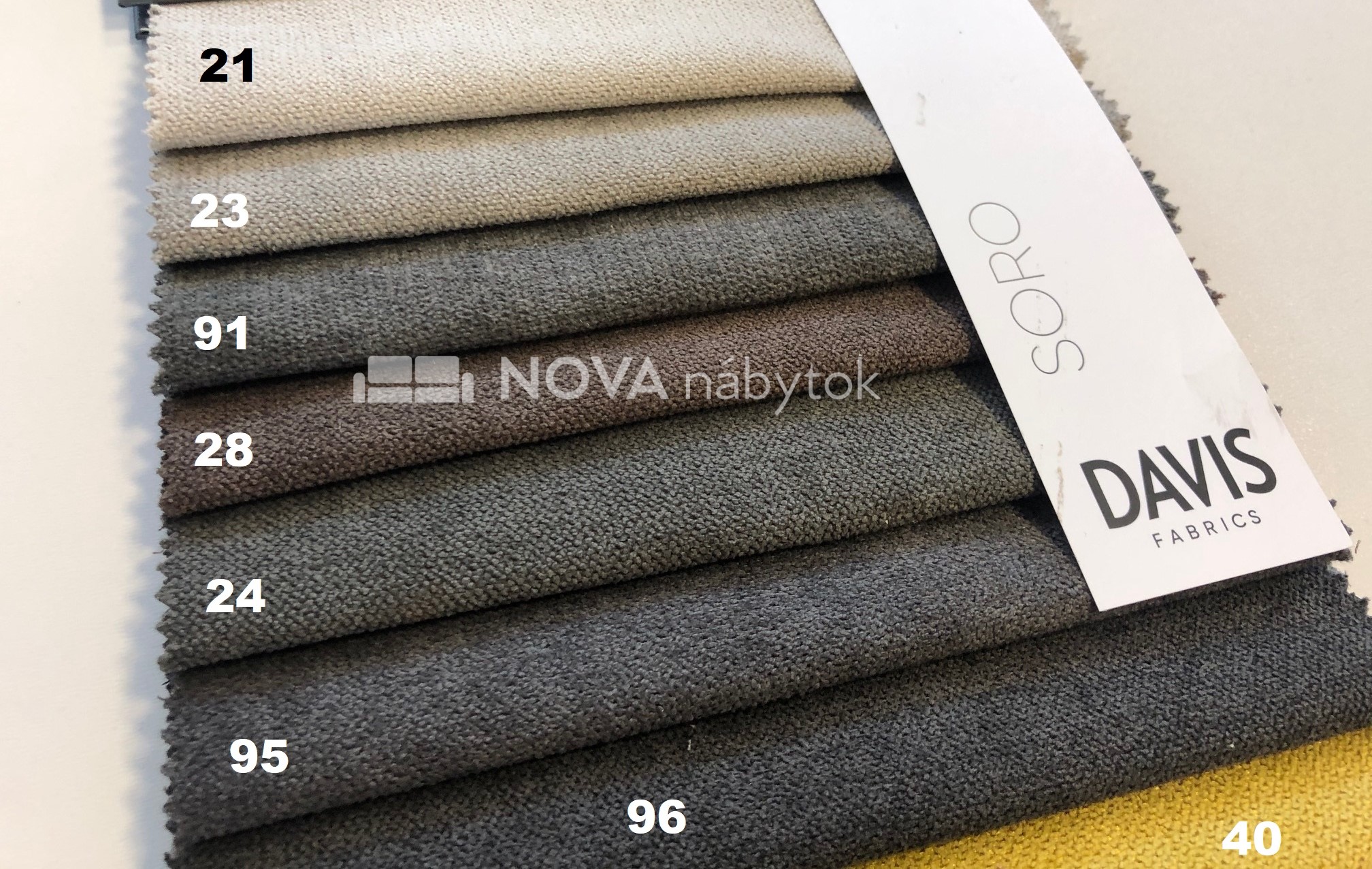 SORO je luxusná a odolná poťahová látka, ktorá spája komfort, dlhú životnosť a estetickú hodnotu. Vďaka bohatej farebnej ponuke sa ľahko prispôsobí moderným aj klasickým interiérom.
