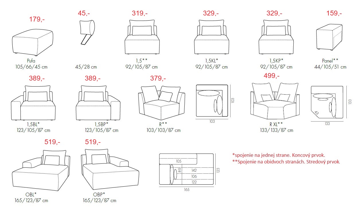 K dispozícii máte široký výber poťahových látok a farieb 🎨. Všetky konkrétne možnosti použitia sú uvedené priamo pri produkte.