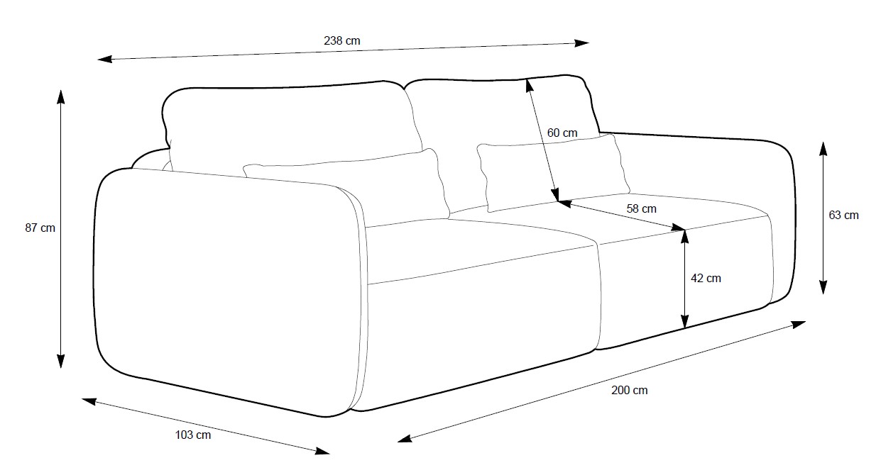Rozmer: 238 x 103 cm, Spacia plocha: 200 x 149 cm