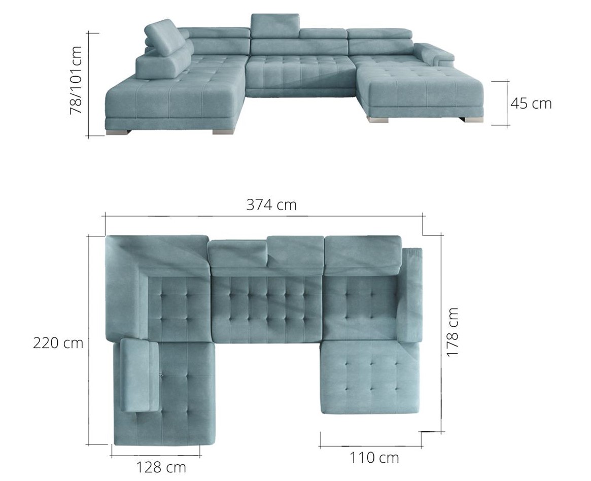 Rozmer: 178 x 374 x 220 cm, Výška: 78 / 101 cm, Výška sedu: 45 cm