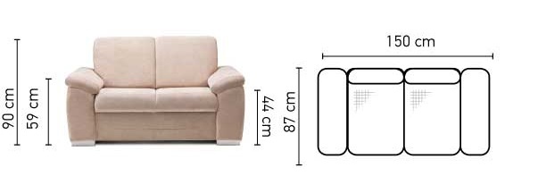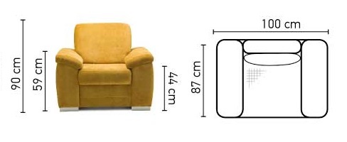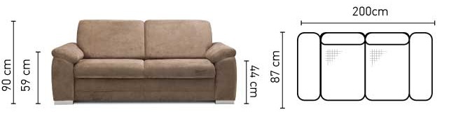 3sed: 200 x 87 cm, 2sed: 150 x 87 cm, Kreslo: 100 x 87 cm, Výška: 90 cm, Výška sedu: 44 cm