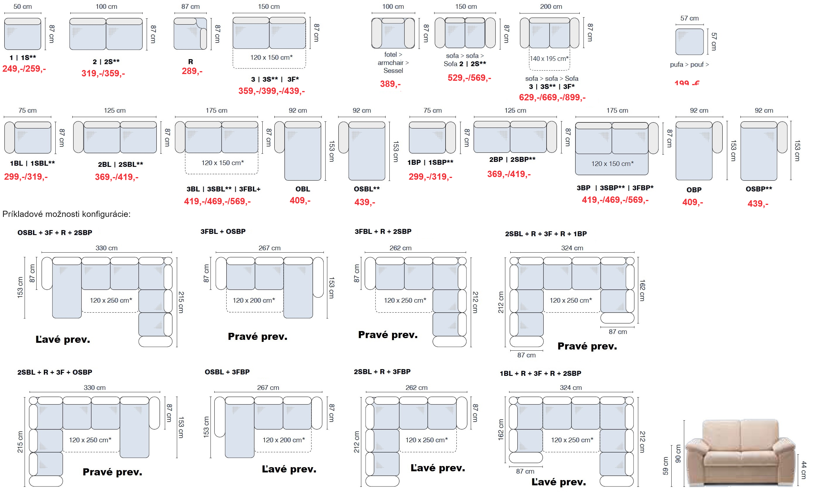 - dostupné rôzne komponenty na zloženie sedačky v atypickom rozmere