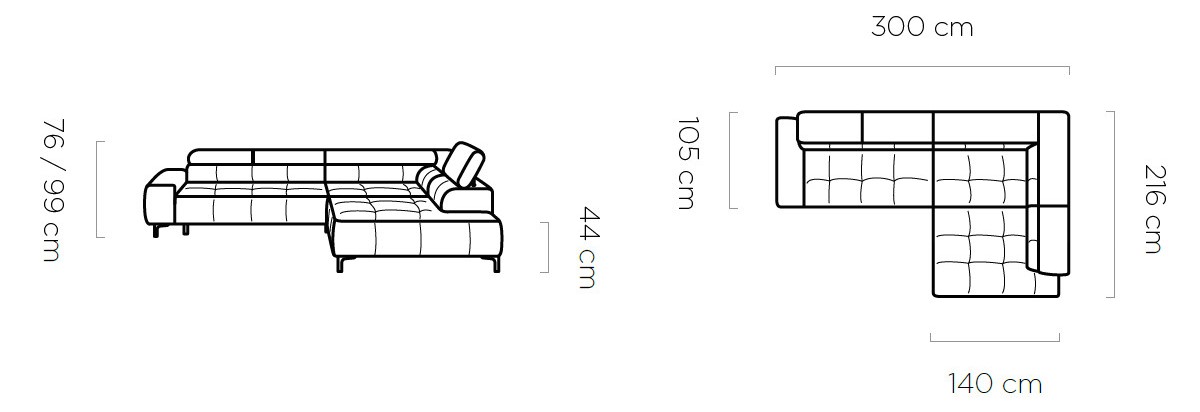Rozmer: 300 x 216 cm, Výška: 76 / 99 cm, Výška sedu: 44 cm