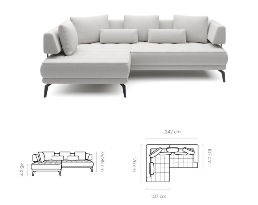 Rozmer: 242 x 176 cm Výška: 75 / 85 cm Výška sedu: 45 cm