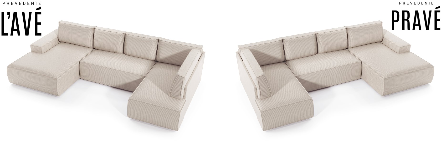 Pravé, alebo Ľavé prevedenie sedacej súpravy, treba zadať pred objednaním.
