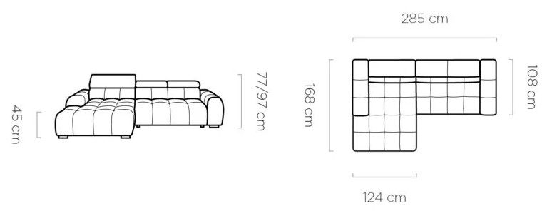 Rozmer: 285 x 168 cm, Výška: 77 / 97 cm, Výška sedu: 45 cm