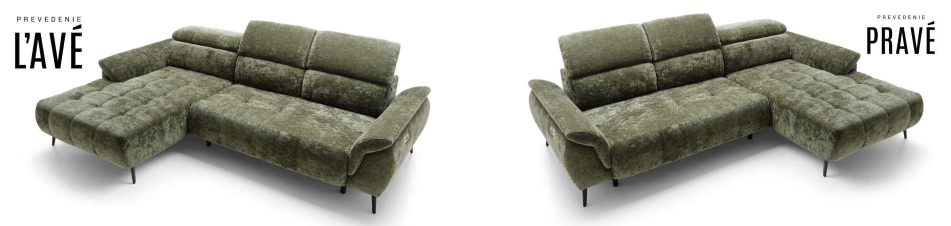 Pravé, alebo Ľavé prevedenie sedacej súpravy, treba zadať pred objednaním.