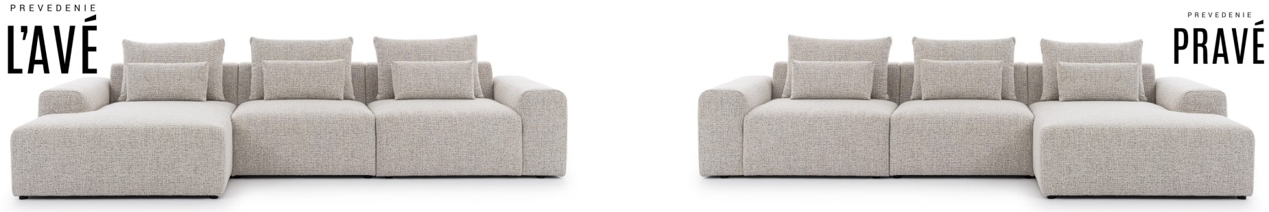 Moderná sedačka v minimalistickom dizajne LUNA v tvare rohovom prevedení verzia R4 (OBL+1,5+1,5BP) vyobrazena cena bez zahlavníkov