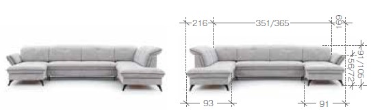 Rozmer: 216 x 351/365 x 169cm, Výška sedu: 45 cm