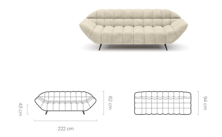 Pohovka sľubuje dlhú životnosť, preto sa táto investícia skutočne oplatí. Konštrukciu z masívneho dreva a drevotriesky vypĺňa vysoko elastická HR pena a pružiny v tvare vlnoviek. HR pena, známa aj ako studená pena, sa dokonale prispôsobí sediacemu, kvalitné pružiny zas násobia skvelý pocit zo sedenia. Všetko sa to ukrýva pod pevnou a odolnou látkou, ktorá je ozdobená dekoratívnym šitím. Práve toto dekoratívne šitie na sedacej časti aj operadle robí z pohovky Luppa Sofa 3 výnimočný kúsok. K tomu pripočítajte atypický tvar sedačky a získate skvost, ktorý vás nikdy neomrzí.