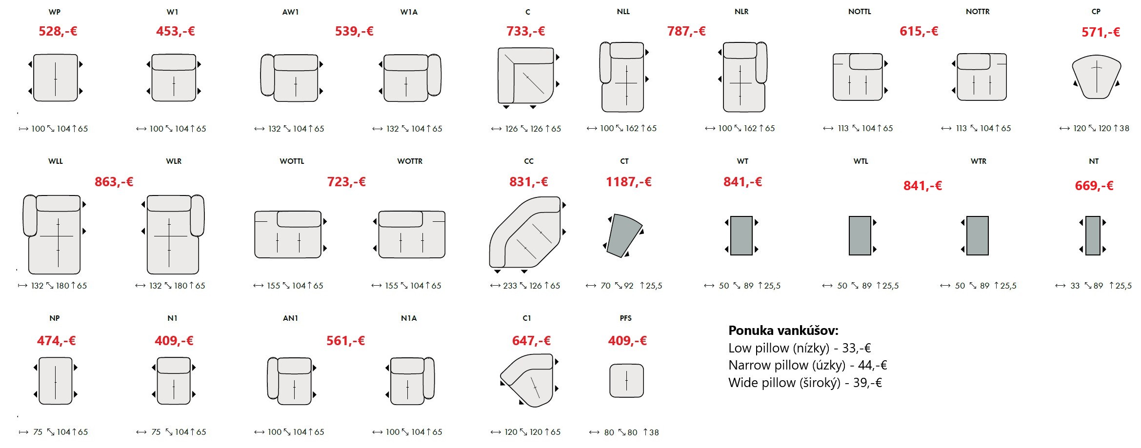 - v ponuke rôzne komponenty na vytvorenie sedačky v akomkoľvek rozmere