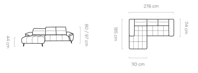 Rozmer: 276 x 185 cm, Výška: 80 / 97 cm, Výška sedu: 44 cm