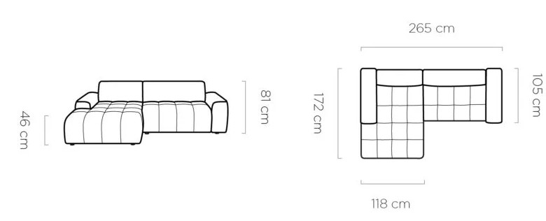 Rozmer: 265 x 172 cm, Výška: 81 cm, Výška sedu: 46 cm