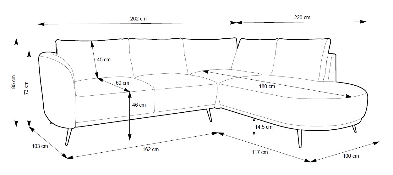 Rozmer: 262 x 220 cm, Spacia plocha: 220 x 140 cm, Výška: 73 / 85 cm
