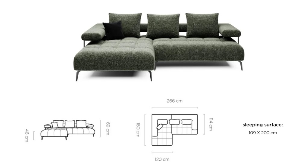 Rozmer: 266 x 180 cm, Výška: 69 cm, Výška sedu: 46 cm