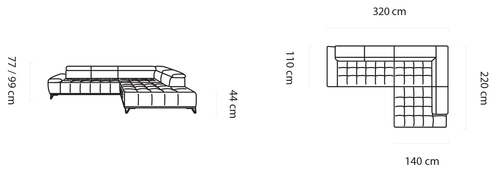 Rozmer: 320 x 220 cm, Výška: 77 / 99 cm, Výška sedu: 44 cm