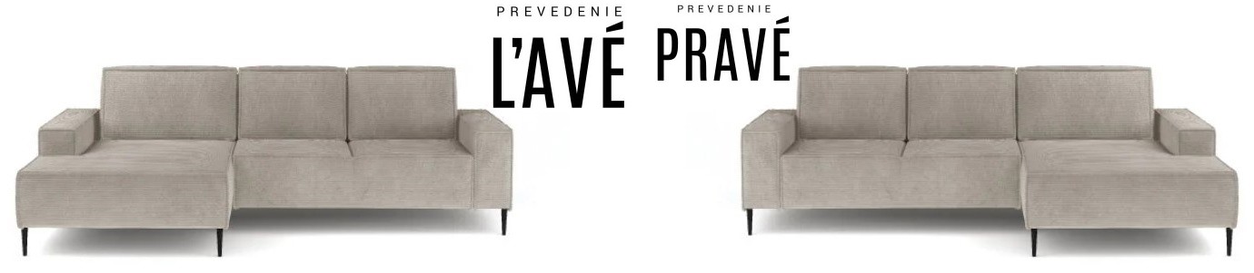Pravé, alebo Ľavé prevedenie sedacej súpravy, treba zadať pred objednaním.